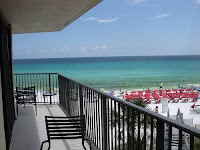 Around 11am David and I left for a kid free vacation. The kids stayed with my parents. It has been 2 years since our last vacation with just the two of us, so it was long over due. We decided to go to the Hilton in Sandestin. We got a great room called the King Ambassador Parlor Suite, it is basically 2 rooms a living area and a bedroom. The view from the room is awesome. The room has lots of windows with a wonderful view of the Gulf of Mexico.