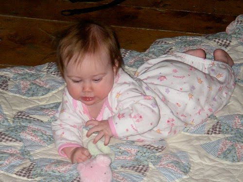 Madilyn is 10 months old today! She is growing up so fast. Her first tooth has finally come all the way in and she has a second one that has just broken through. She is one of the fastest crawlers I have ever seen. She really gets around. She is trying to walk, and does great when there is something for her to hold onto. She is starting to stand by herself but can only do so for a few seconds before falling. She has the most beautiful smile. I can not believe that she has been in our lives for 10 months already. Time is really flying.